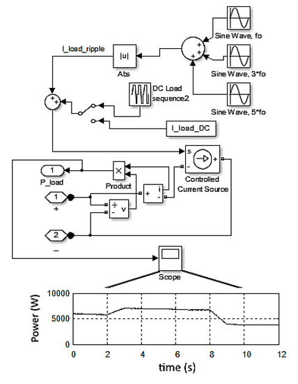 A controlled power source operating in constant or variable power mode is used to model the equivalent load demand on the DC bus (Figure 4).