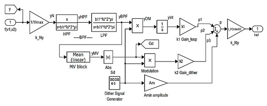 The Extremum Seeking Control (ESC) scheme used here to find the MEP (maximum of the FC net power or of the fuel economy optimization function ) is that proposed in [52] due to its performance (the GES feature) and simple implementation (see GES control block in Figure 1 and the ESC diagram in Figure 5). The reader interested to find more information about the ESC design is redirected to [59,60], where numerous design examples are presented and the ESC performance is fully evaluated.