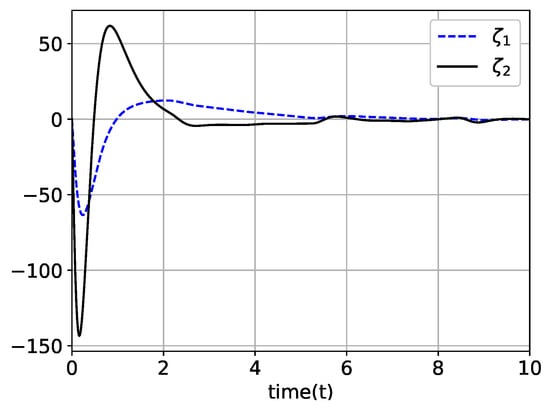 In the field of controllers for linear or nonlinear systems, the online time-derivative estimator or differentiator plays a crucial role. Applications of differentiators include proportional–integral–derivative (PID) controller [1,2], state estimator in the output-feedback controller [3,4,5], active disturbance rejection [1,6], fault diagnosis schemes [7], and approximation-free controller for uncertain nonlinear systems [8,9,10]. The performance of the controller is directly influenced by that of the differentiator. Therefore, extensive research studies have been performed on differentiators, including high-order sliding mode differentiators (HOSMDs) [4,11,12,13], singular perturbation-technique-based differentiators [14], high-gain observers (HGOs) [3,15,16], uniformly convergent differentiators [17], and augmented nonlinear differentiators [18]. Especially in the output-feedback controller design of uncertain nonlinear systems, HGO and HOSMD are widely adopted differentiators. The HGO dynamics has a relatively simple linear form. It has a drawback of peaking caused by a non-zero initial condition. Thus, it is not robust against measurement noise. The HOSMD has the advantages of finite-time exact convergence and robustness against disturbance. However, HOSMD contains switching functions in its dynamics, so its estimations inevitably contain chatterings. Another drawback of HOSMD is that its dynamic equations are rather complex.