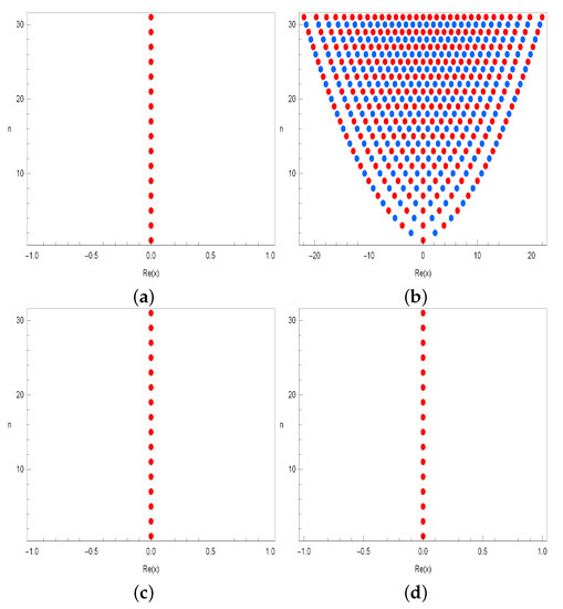 Real zeros of . (a); (b) ; (c) ; (d) .