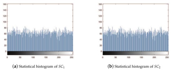 Moreover, in Algorithm 2, we use RG-VSS to split every pixel of authentication image into temporary bits; one is assigned to binary authentication shadow, and the others are used to guide the generation of secret shadows in polynomial-based SIS. The specific guidance method is as follows: we continue to screen until we find a set of random values to satisfy and , for , (randomly pick up n numbers from . So, what we change and influence are the LSBs of the shadows generated by the polynomial-based SIS, and the shadow itself is noise like, so it is difficult to be detected even if we modify the LSBs of all pixels of all shadows. Figure 8 shows that the shadows are randomly generated by the polynomial-based SIS.