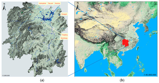 Alternative locations of inland NPPs in Hunan province. (a) The locations of inland NPPs; (b) The location of Hunan.