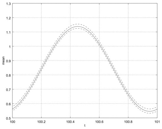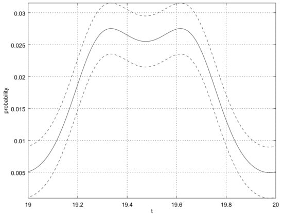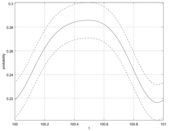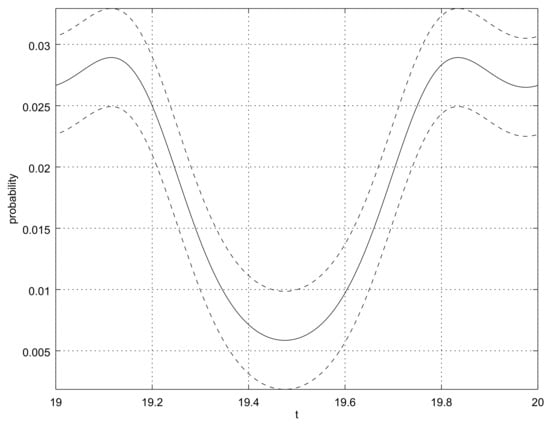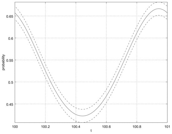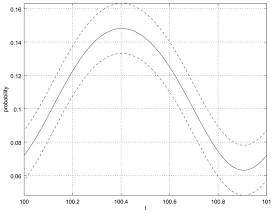 Theorem 7. Let, instead of Equation (40), the stronger conditionhold. Therefore, the chain is weakly exponentially ergodic in the uniform operator topology, and if the perturbations are small enough, that is, for almost all , then the perturbed chain is also exponentially weakly ergodic, and the perturbation bound expressed by Equation (7) holds with and . 5. Examples