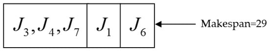 - Graham, R.L.; Lawler, E.L.; Lenstra, J.K.; Rinnooy Kan, A.H.G. Optimization and approximation in deterministicsequencing and scheduling: A survey. Ann. Discret. Math. 1979, 5, 287–326. [Google Scholar]