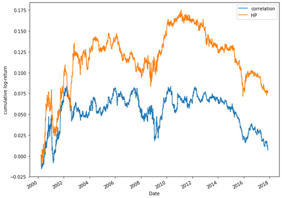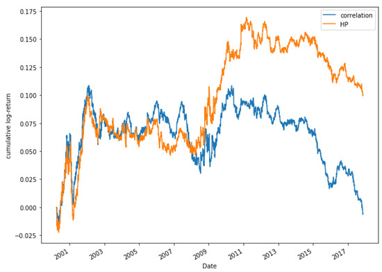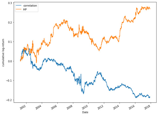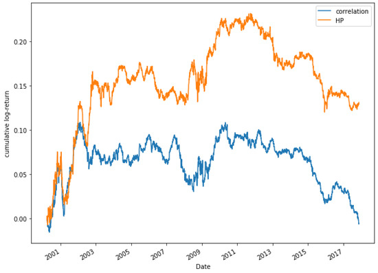 As it was explained in Section 2.2, the HP model is proposed as an alternative to correlation, which is why in this section a comparison using both models is done, to check whether it is true that our model is superior to the correlation method. In a previous work [62], it is shown that the strategy of Pairs Trading does not obtain good results by selecting those highly correlated pairs. The goal of this section is to test if a Pairs Trading strategy based on HP improves the performance of the strategy.