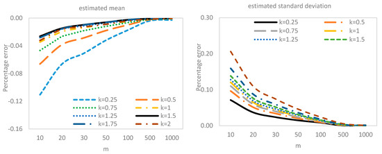 where and . is the cumulative distribution function of . The truncated mean and variance in Equations (13) and (14) are evaluated for different values of and , and are given in Table 10.