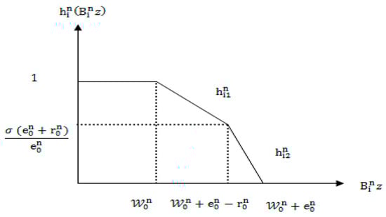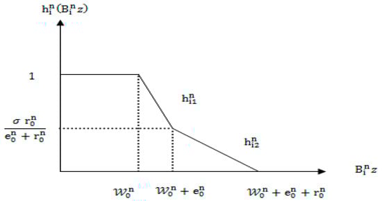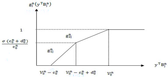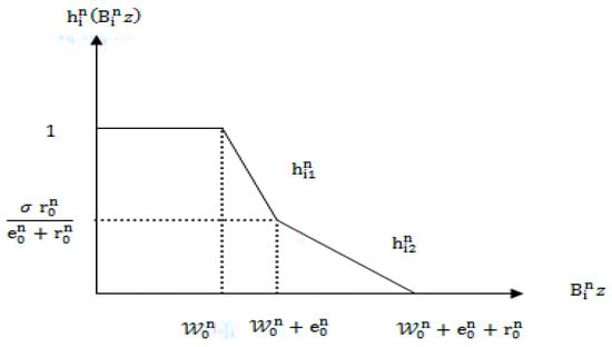 The player in this approach has optimistic attitude which mean that the player has a hesitation for rejection. Let and , respectively, express the tolerance level pre-specified by Player I for rejecting or accepting the level of aspiration related to criteria. Suppose , be the resolving indeterminacy functions related to criteria. Similarly, and be the tolerance level pre-specified by Player II for rejecting or accepting the level of aspiration related to criteria. Suppose , is the resolving indeterminacy functions related to criteria.