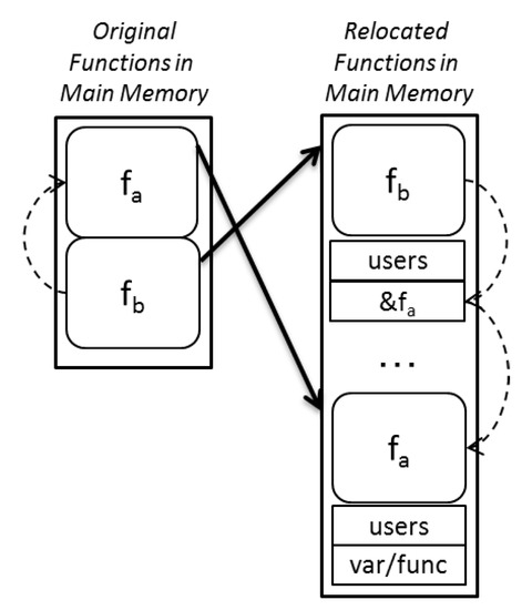 - Cros, F.; Kosmidis, L.; Wartel, F.; Morales, D.; Abella, J.; Broster, I.; Cazorla, F.J. Dynamic software randomisation: Lessons learnec from an aerospace case study. In Proceedings of the Design, Automation Test in Europe Conference Exhibition (DATE), Lausanne, Switzerland, 27–31 March 2017; pp. 103–108. [Google Scholar]