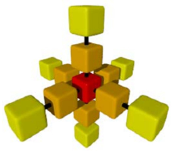 The computing kernel of this application is an iterative 4th order 3D stencil process, where each element of the data matrix is obtained as a function of 13 points that include 12 neighbor points and the own data point being estimated. Thus, on each iteration of the algorithm, all points of the 3D data matrix are updated converging to a precise representation of the specific variable being modelled. Figure 5 illustrates the specific points used for the computation of each point in each iteration, which include the two closest points in each direction of the 3 dimensions, as well as the point being updated.