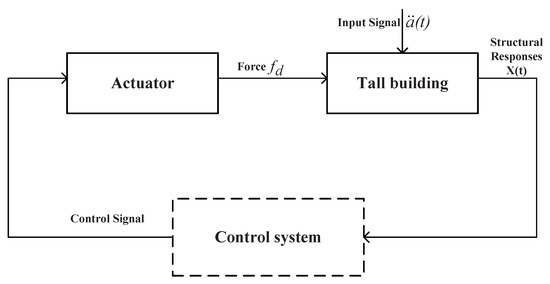 The vibration control system of a building structure is represented schematically in Figure 1, and its dynamic model is given by [4,9]: