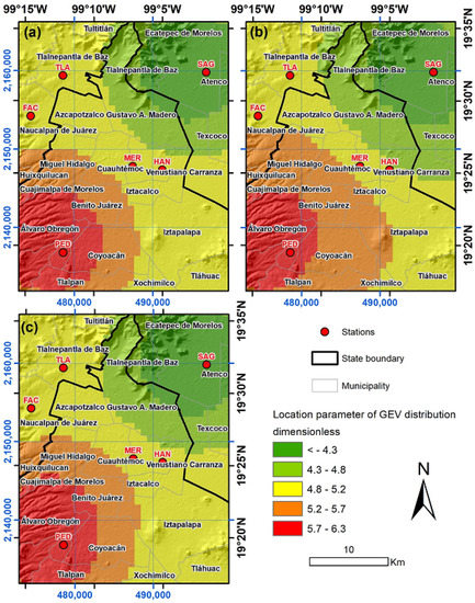 The monitoring and analysis of UVB radiation levels is a priority concern in terms of public health for all the largest population centers. In previous studies on UVB radiation in the metropolitan area of Mexico City, Acosta and Evans [40] found that UVB radiation levels, measured over the international standard units, reached dangerous levels for humans. We agree with their findings, in which they also detected a strong attenuation of UVB radiation at ground level in the urban troposphere under polluted conditions. However, in contrast to them, we have used the GEV distribution. An alternative to this distribution is the skew generalized extreme value distribution (SGEV) [41], which showed that it improves the return level estimation in the case of a slow convergence or in the heavy-tailed case. Future work should consider the use of the SGEV distribution for analysis of UVB radiation extremes.