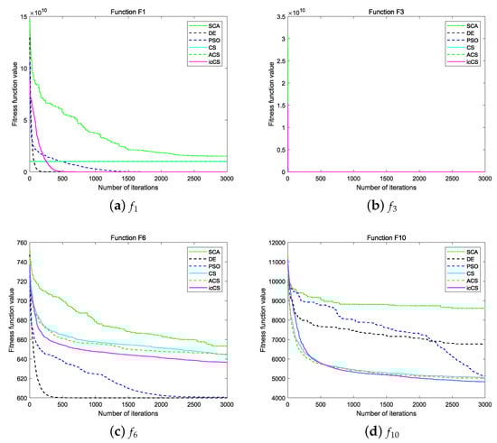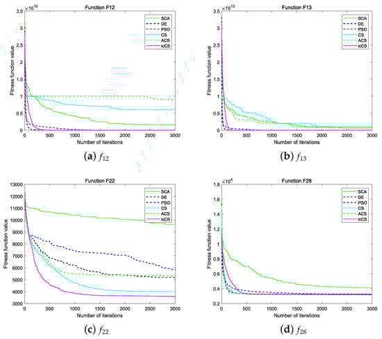 ) were selected as the test functions to compare the convergence of icCS and other common classic algorithms for evaluation of convergence. The comparison of the convergence performance of the icCS algorithm proposed in this paper and other common classical algorithms is shown in