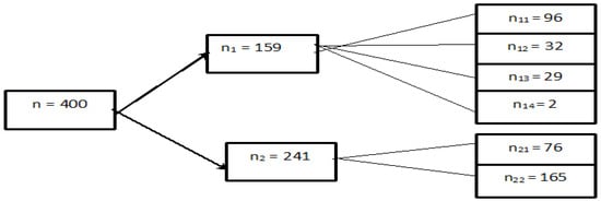 Figure 1 shows the sample size for each stratum. The sample sizes for the first stratum containing 159 public school female teachers are further stratified as follows: female teachers from government girls primary school ( = 96), female teachers from government elementary school (= 32), female teachers from government model school ( = 29), and female teachers from community model school ( = 2). The sample sizes for the stratum containing 241 private schools female teachers are further stratified as follows: female teachers from private registered girls school ( = 76) and female teachers from PEF school ( = 165).