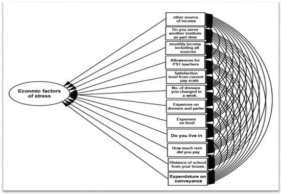 The hypothetical models for social factors and health factors are presented in Figure 9 and Figure 10, respectively. Model I in Figure 9 presents the social causes of stress in primary school female teachers. Model II in Figure 10 shows the health causes of stress in primary school female teachers. Model III in Figure 11 presents the economic causes of stress in primary school female teachers.