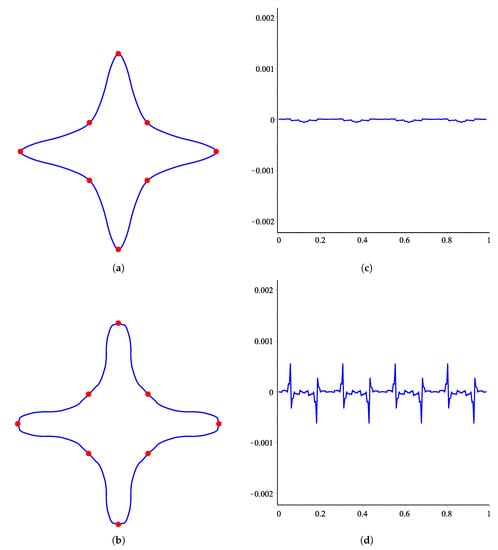 Using Equation (3), it is evident that (4) is convergent. Peng et al. [] proved that the -scheme generates limit curves when . They also analyzed the fractal behaviour of the scheme.