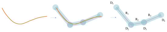 Therefore, for applications, instead of considering an exact trajectory it should be considered a sequence of rectangles, with the characteristic lengths and displacement vector length, a sequence of position disks, with characteristic length , which give a region of confidence containing real trajectories arising from sampling. Naturally, the smaller the accuracy parameters, , , the closer the sampled trajectories are to the theoretical bimodal trajectories. See the Figure 9, where an hypothetical empirical trajectory and its bimodal trajectory region are detailed.