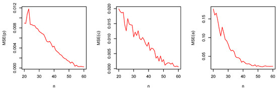 According to Table 2, it is clear that the MTTF and entropy increase for fixed values of and with . Whereas, for fixed values of and with , the MTTF and entropy decrease.
