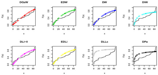 The Gz distribution is often applied to describe the distribution of adult lifespans by demographers and actuaries. Related fields of science such as biology and gerontology also consider the Gz distribution for the analysis of survival. More recently, computer scientists have also started to model the failure rates of computer codes using the Gz distribution. In marketing science, it has been used as an individual-level simulation for customer lifetime value modeling. For more details, see Willemse et al. [1], Preston et al. [2], Melnikov and Romaniuk [3], Ohishi et al. [4], Bemmaor et al. [5], Cordeiro et al. [6], El-Bassiouny et al. [7,8,9], Alzaatreh et al. [10], Roozegar et al. [11], Mazucheli et al. [12], Eliwa et al. [13], among others.