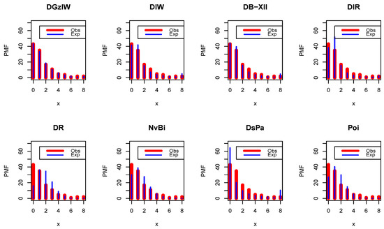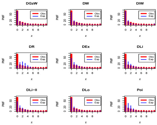 - Gómez-Déniz, E.; Calderín-Ojeda, E. The discrete Lindley distribution: Properties and applications. J. Stat. Comput. Simul. 2011, 81, 1405–1416. [Google Scholar] [CrossRef]