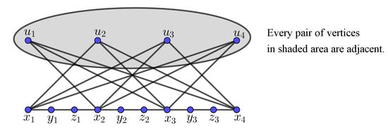 We first show that . Without loss of generality, assume that Dominator starts the game by playing vertex . Then, each vertex in is dominated. Staller plays another vertex in A. Now all vertices in B are dominated. Then, Dominator and Staller must alternately play all vertices in A. Consequently, .