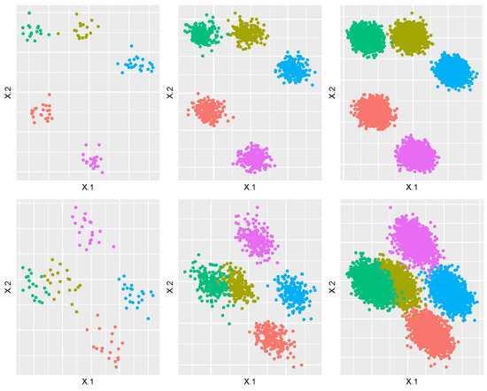 Figure 5 was selected because it reflects the difficulty of the dataset, i.e., a small number of observations in the dataset along with a high degree of overlap between the components can be seen as a difficult clustering problem, while the large number of observations with a small degree of overlap can be seen as a simpler clustering problem.