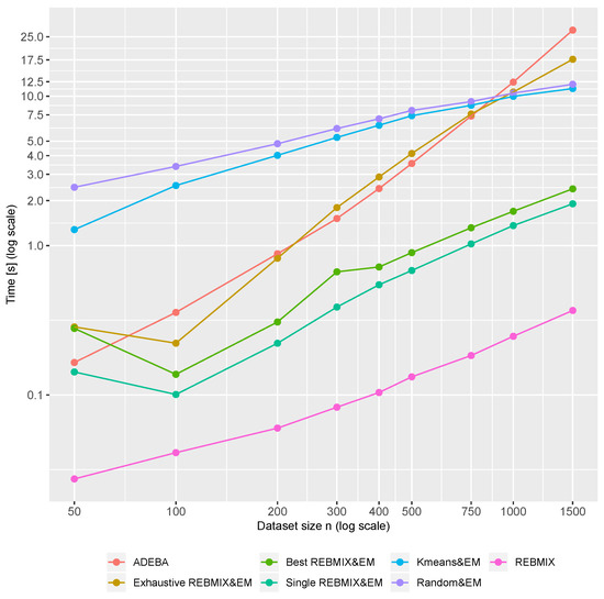Figure 14. However, due to the fact that a smaller number of EM iterations was needed with the REBMIX, as an initialization technique, this remains acceptable. If the time efficacy is a major concern, to obtain the best-possible results for the datasets with a larger number of observations