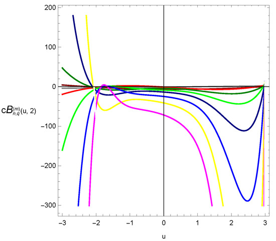 We display the shapes of the qGTBP and investigate its zeros. We plot the graph of qGTBP for combined together. The shape of qGTBP for , and are displayed in Figure 1.