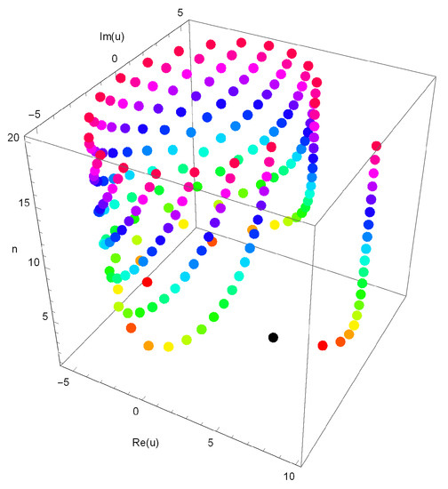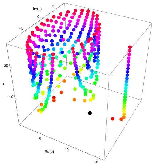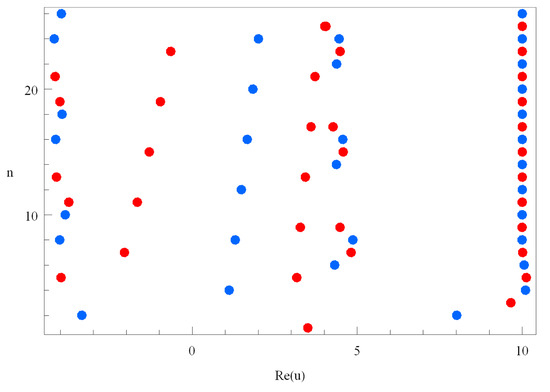 Stacks of zeros of qGTBP for and form a 3-D structure and are presented in Figure 3. Next, we plot the real zeros of the qGTBP for and in Figure 4.