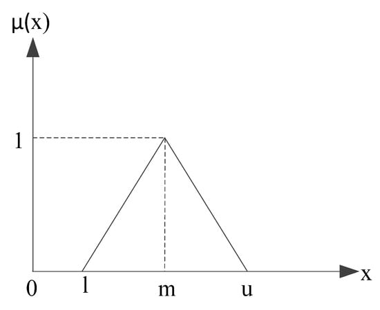 Prior to explaining F-BWM, some fundamental notations regarding fuzzy sets can be useful. Zadeh [] introduced fuzzy sets for better reflecting of the human judgments and assessment in the decision making process. It is considered as a more robust tool to deal with vagueness, ambiguity, and uncertainty. Many decision-making problems consist of goals, constraints, and possible actions that are not known precisely []. The usage of fuzzy sets is better for transforming the linguistic decision of human judgment. Hence, many real-world decision-making problems have used fuzzy sets [,]. A triangular fuzzy number consists of lower, medium and upper numbers of the fuzzy as where l, m and u which is crisp and real numbers ( The membership function of a triangular fuzzy number can be defined as follows: