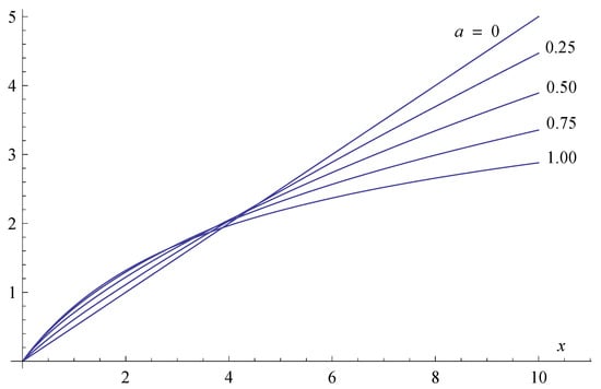 which when reduces to the function . A physical application of this function for arises in the study of the creep features of a linear viscoelastic model; see Reference [] for details. An analogous extension of the generalised sine and cosine integrals was also considered in Reference []. Plots of all these functions for were given.
