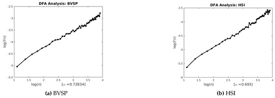 Detrended Fluctuation Analysis (DFA) for BVSP and HSI.