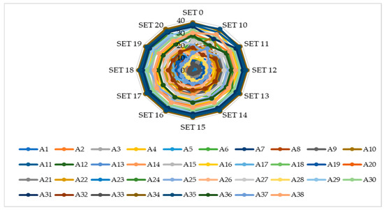 | A38 | (0.333,0.333,0.556) | (0.111,0.111,0.333) | (0.111,0.111,0.111) | (0.111,0.111,0.111) | (0.143,0.143,0.143) | (0.111,0.111,0.333) |