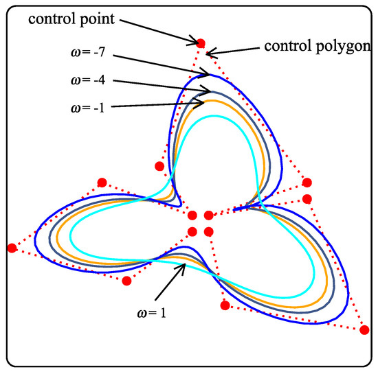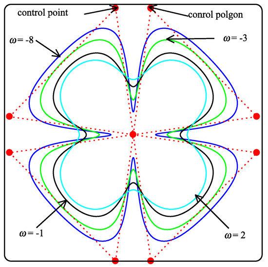 where w is called the shape controlling parameter and it is used to control the shape of the control of the polygon.
