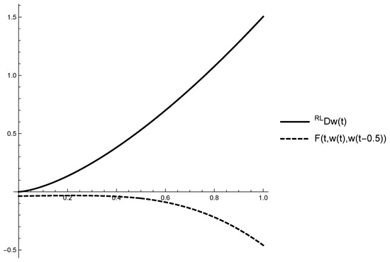 is a lower solution on of the IVP for FrDDE (17) because holds and according to Proposition 1 with the following inequalities