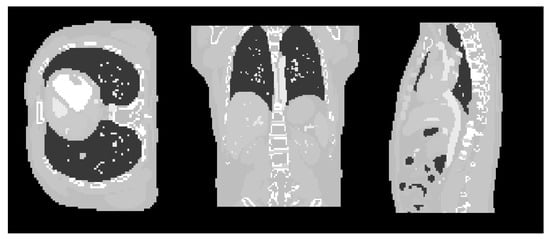 - Segars, W.; Sturgeon, G.; Mendonca, S.; Grimes, J.; Tsui, B.M. 4D XCAT phantom for multimodality imaging research. Med. Phys. 2010, 37, 4902–4915. [Google Scholar] [CrossRef]