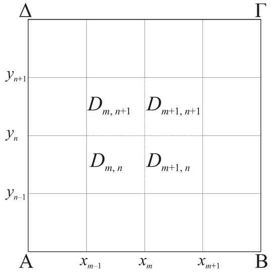 for any , , and . We verify that is well defined and that does indeed take into itself. If , and , , the value of is uniquely determined by Equation (11). It remains to be demonstrated that is well defined at the points which lie at the common boundaries of two or more subrectangles, say and as depicted in Figure 1, that is and .
