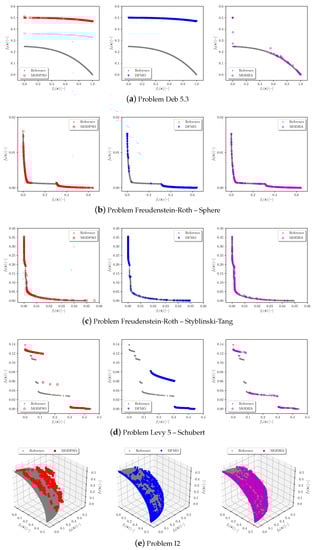 The MODPSO setup was defined as in []: number of particles equal to , initialized using a Hammersley sequence sampling [] over variables domain and boundaries; coefficients and []; box constraints handled by a semi-elastic wall-type method [].