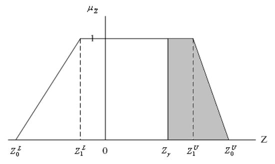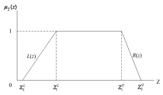 where and . is also a trapezoidal fuzzy number defined as , since the function relationship between and is linear. The trapezoidal membership function is shown in Figure 8.