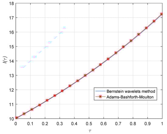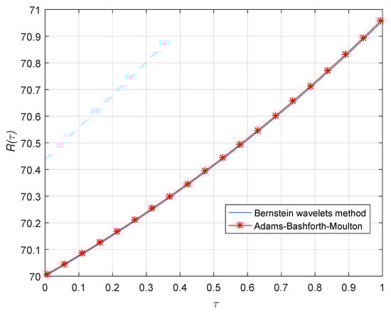 The key aim of present investigation is to a discuss an efficient computational approach for solving Equation (1). The suggested computational approach is based upon Bernstein wavelets approximation. An exact formula for the RL fractional integral operator for the Bernstein wavelets is computed. Moreover, the derived formula is then employed to convert the linear or non-linear fractional differential equations into the system of algebraic equations. Next, Adams–Bashforth predictor correcter scheme is also discussed for solving the same [27,28]. We have compared the solutions with Adams–Bashforth predictor correcter scheme for the accuracy and applicability of the Bernstein wavelets technique.