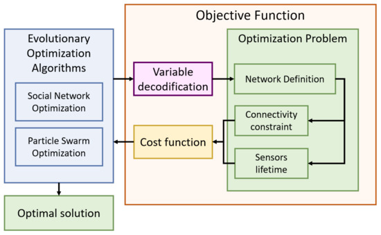 The design of a WSN is a very challenging task: in fact, several problems can be faced and should be solved for reducing the operational cost of them [12]. The first problem that can be faced in the design of a WSN is the deployment of sensors in the sensing field: the typical objectives are the coverage maximization. Another important problem in WSN is clustering the sensors for reducing the number of cluster heads, for reducing the information delay, and for reducing the energy consumption. This problem has been widely addressed with Evolutionary Algorithms [13] and Swarm Intelligence Algorithms [14].