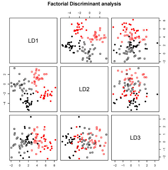 - Fisher, R.A. The use of multiple measurements in taxonomic problems. Ann. Eugen. 1936, 7, 179–188. [Google Scholar] [CrossRef]