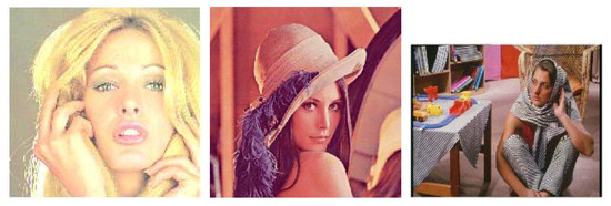 The original test images: From (left), Tiffany, Lenna (middle), and Barbara (right).