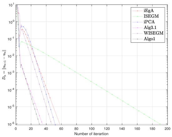 For Algorithm 2 (shortly, Algo2), we take and The results are shown in Figure 9, Figure 10, Figure 11, Figure 12, Figure 13, Figure 14, Figure 15 and Figure 16.
