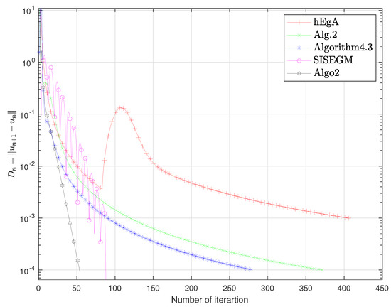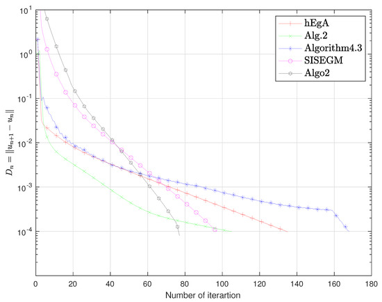 For the numerical results of Algorithm 2, we used the following algorithms with strong convergence.