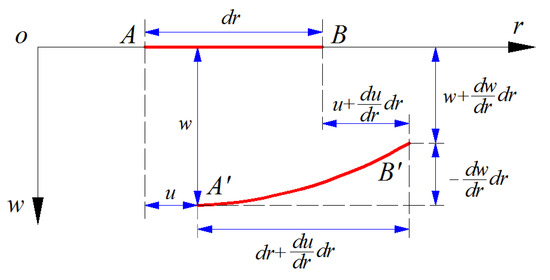If the radial displacement and deflection at point is denoted as u and w, respectively, then after expanded into Taylor series, the radial displacement and deflection at point can be written as