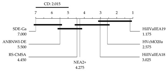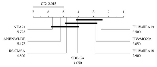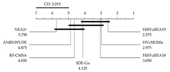 - Derrac, J.; García, S.; Molina, D.; Herrera, F. A Practical Tutorial on the Use of Nonparametric Statistical Tests as a Methodology for Comparing Evolutionary and Swarm Intelligence Algorithms. Swarm Evol. Comput. 2011, 1, 3–18. [Google Scholar] [CrossRef]