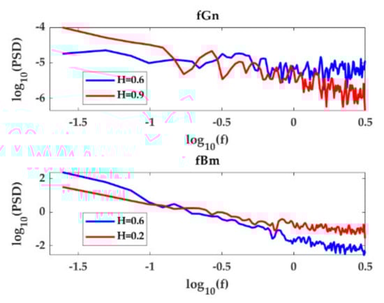 Figure 11). We recall that the noise is simulated line wise as a fGn with a given Hurst parameter varying from 0.5–1 (persistent correlations). Working with real observations this assumption has to be tested by analyzing the stationarity of the time series as well as the power law of its PSD.
