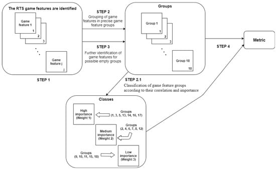 Pathway (steps taken) from the identification of the RTS game features to the novel metric.