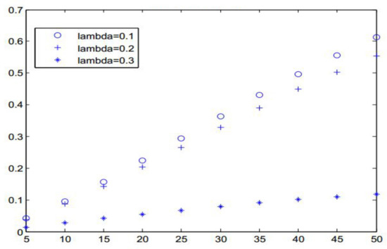 Note that equations in (4) and (5) are obtained from the probability density function given in (1) and after calculating the expected value of (4). In addition, is different from . For the M-step, we update by the Newton–Raphson iteration , where denotes the gradient vector and denotes the Hessian matrix. As it is known, a suitable initial value is important and difficult to find in numerical computation. Thus, we can get considering as the ordinary least squares (OLS) estimate and then can be computed as until .