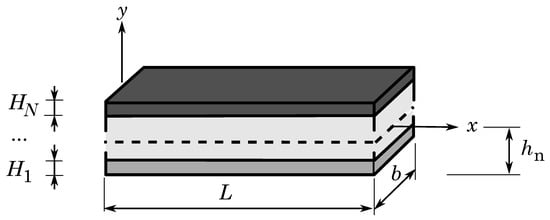 N-layered beam, , , L, and b stand for the thickness of the ith layer, the position of the neutral fibre, the length of the beam and its width, respectively.